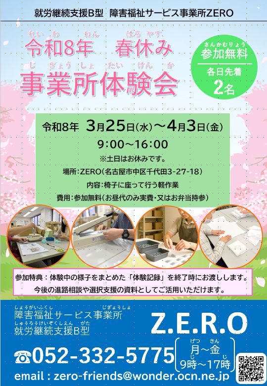 「 Z.E.R.Oで求める人 」【身体・知的・精神/視覚・自閉症・高次能 等】